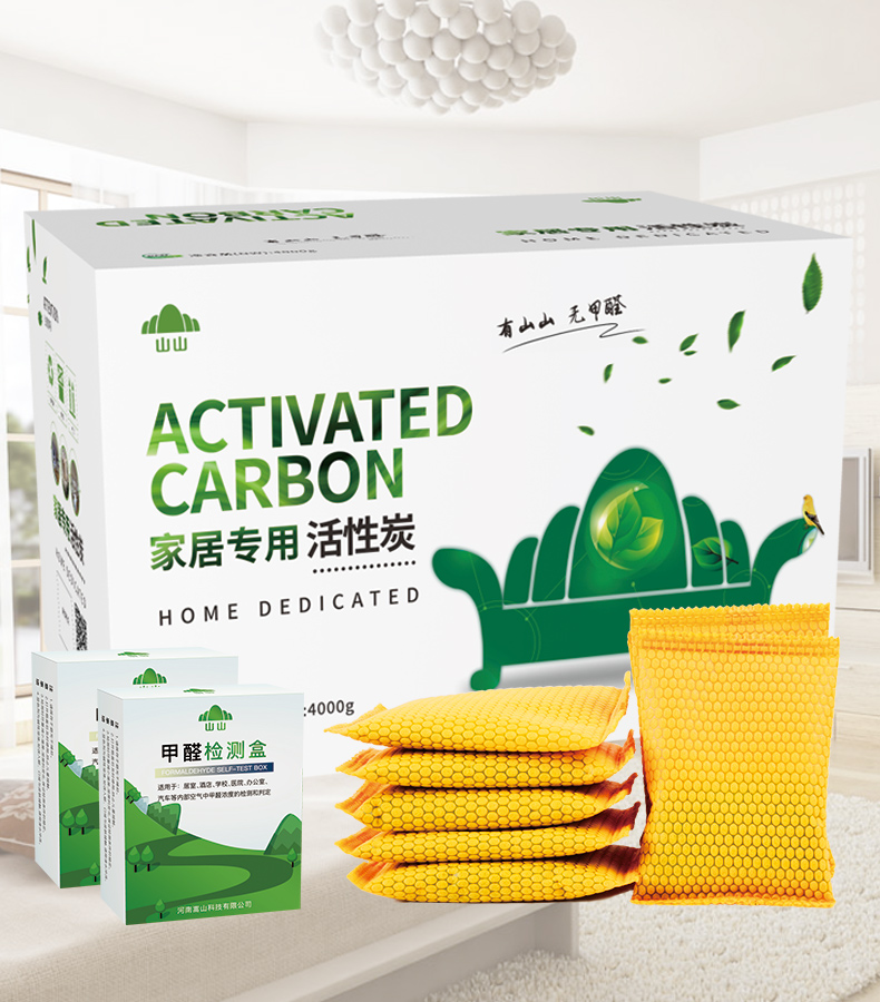 山山居家專用高端活性炭4000g彩箱裝,送4檢測(cè)盒。
